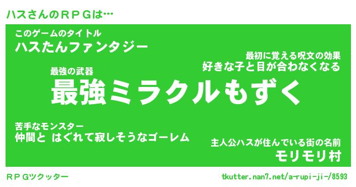 | ファンタジー風あだ名 | 『ハスフェル』『エターナルハスー』 |