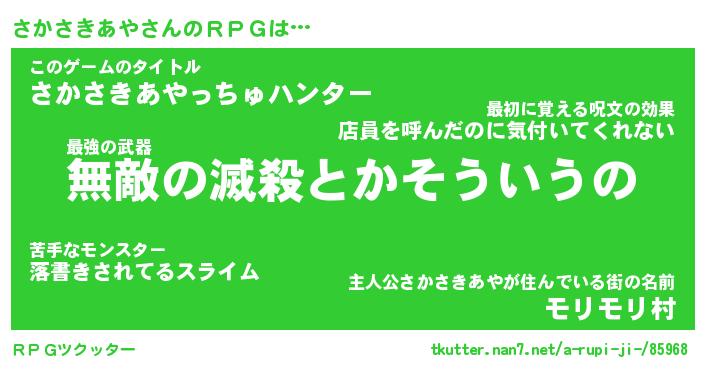 | 胡散臭い通販商品みたいなあだ名 | 『モテモテ間違いなし霊験あらたかなお札…その名も「さかさきあや」』 |