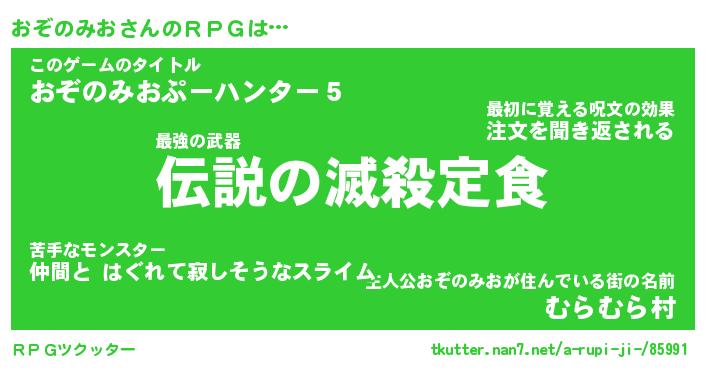 | ファンタジー風あだ名 | 『オゾフェル』『エターナルオゾノミオー』 |