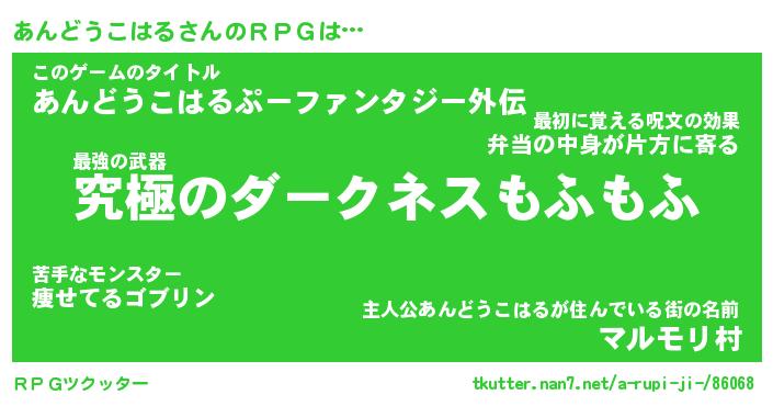 | 男性向けラノベタイトル風あだ名 | 『アンドウコハルアートオンライン』 |