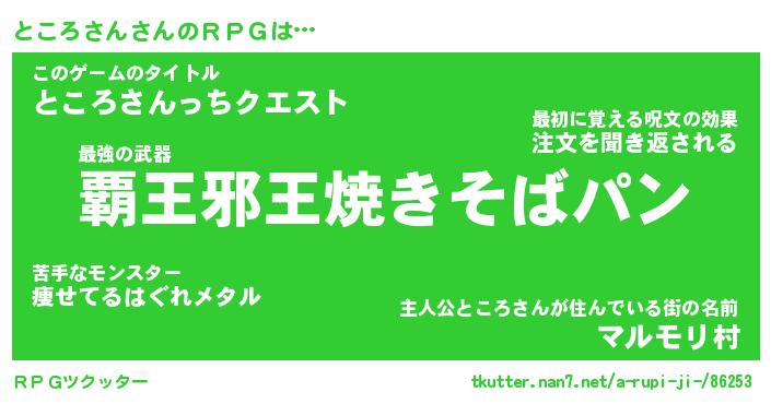 | ファンタジー風あだ名 | 『トコフェル』『エターナルトコロサンー』 |