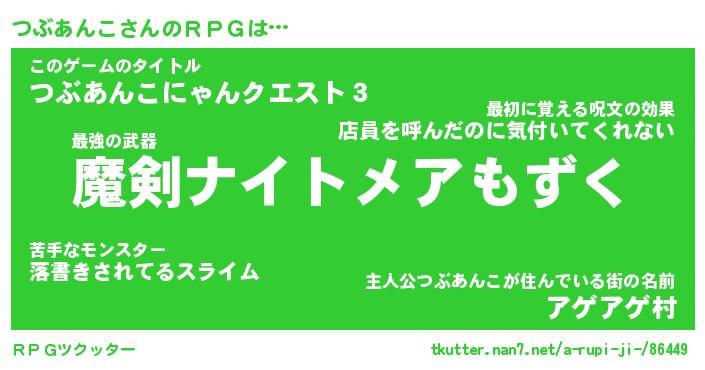 | ファンタジー風あだ名 | 『ツブフェル』『エターナルツブアンコー』 |