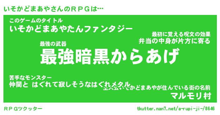| 胡散臭い通販商品みたいなあだ名 | 『モテモテ間違いなし水晶球…その名も「いそかどまあや」』 |