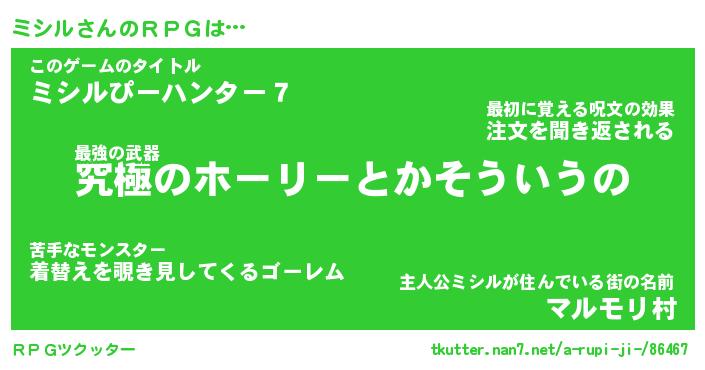 | ファンタジー風あだ名 | 『ミシフェル』『エターナルミシルー』 |