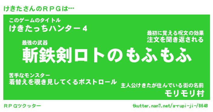 | 男性向けラノベタイトル風あだ名 | 『けきたの憂鬱』 |