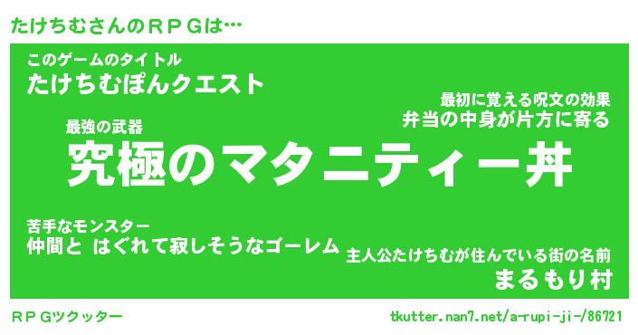| ファンタジー風あだ名 | 『タケフェル』『エターナルタケチムー』 |