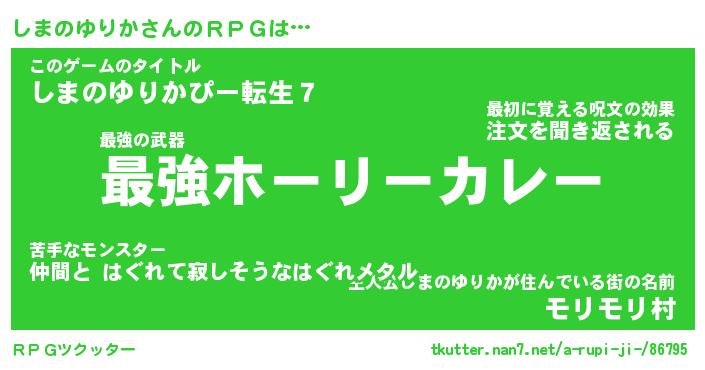 | 女子向けラノベタイトル風あだ名 | 『しまのゆりか姫と円卓の騎士』 |