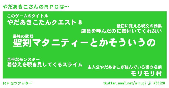 | ファンタジー風あだ名 | 『ヤダフェル』『エターナルヤダアキコー』 |