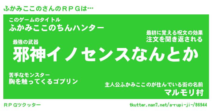 | 伝説のあだ名 | 『封印されしスナイパーふかみここの』 |