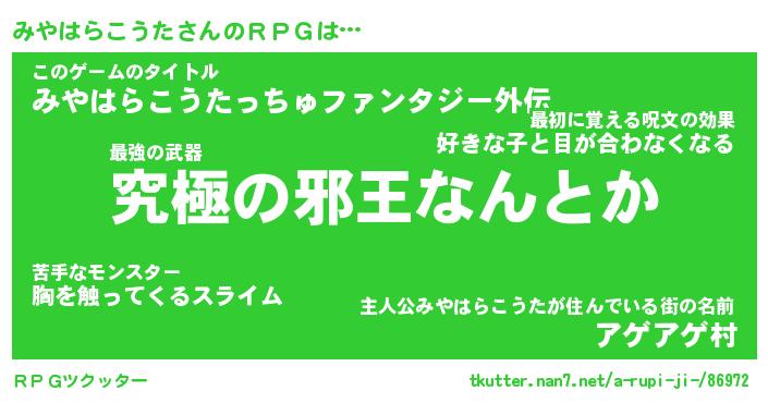 | ファンタジー風あだ名 | 『ミヤフェル』『ファントムミヤス』 |
