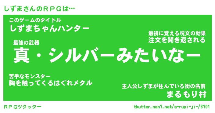 | ファンタジー風あだ名 | 『シズフェル』『エターナルシズマー』 |