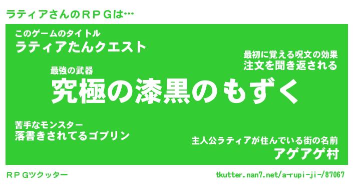 | 男性向けラノベタイトル風あだ名 | 『ラティアアートオンライン』 |