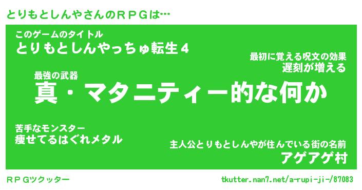 | 自動車の名前っぽいあだ名 | 『トリティマ』『トスラー』『トンR』 |