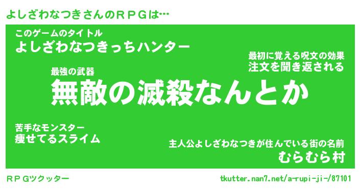 | 伝説のあだ名 | 『封印されしスナイパーよしざわなつき』 |