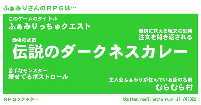 | 男性向けラノベタイトル風あだ名 | 『ふぁみりの憂鬱』 |