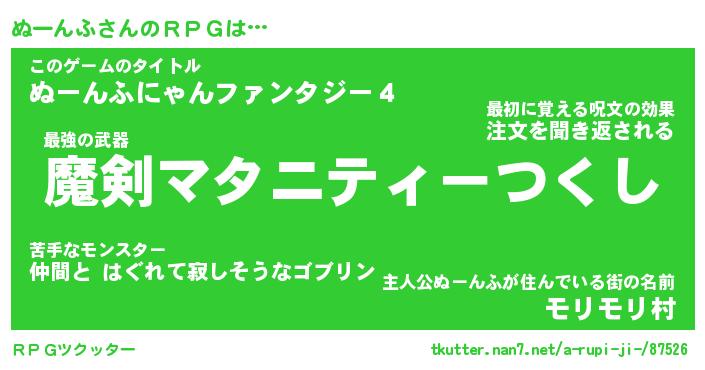 | 男性向けラノベタイトル風あだ名 | 『ぬーんふの憂鬱』 |