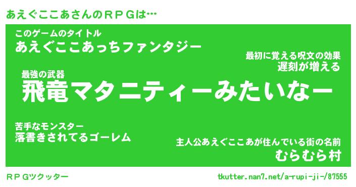 | 男性向けラノベタイトル風あだ名 | 『アエグココアアートオンライン』 |
