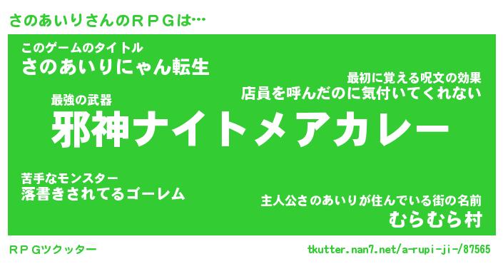 | 男性向けラノベタイトル風あだ名 | 『サノアイリアートオンライン』 |