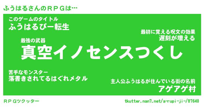 | ファンタジー風あだ名 | 『フウフェル』『エターナルフウハルー』 |
