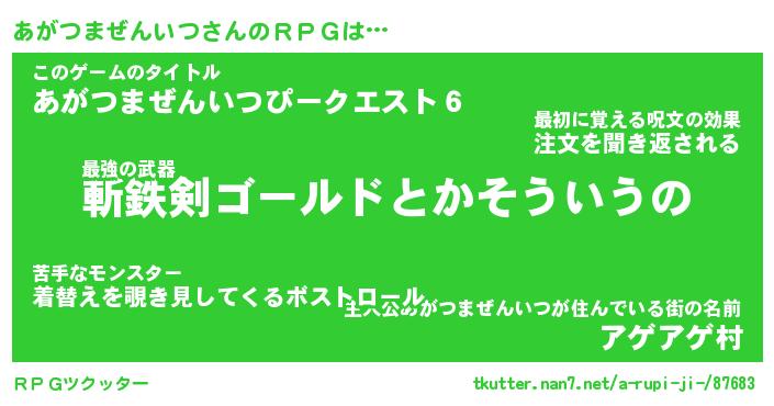 | 男性向けラノベタイトル風あだ名 | 『あがつまぜんいつの憂鬱』 |