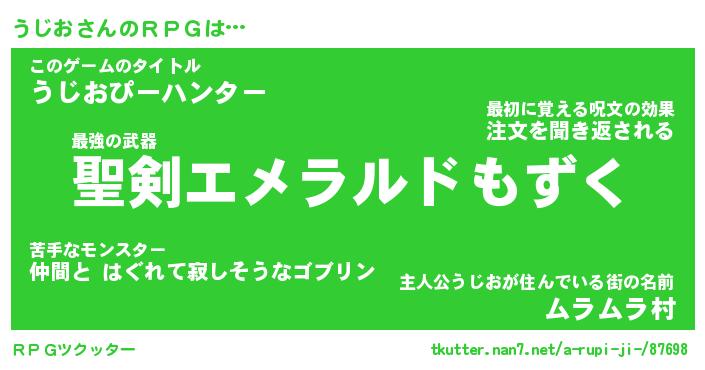| 男性向けラノベタイトル風あだ名 | 『うじおの憂鬱』 |
