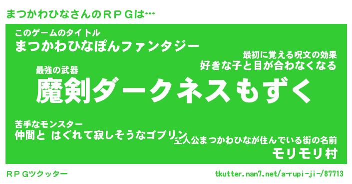 | ヒーロー風カッコイイあだ名 | 『スーパーマツカワヒナ』『銀牙騎士マツ』 |