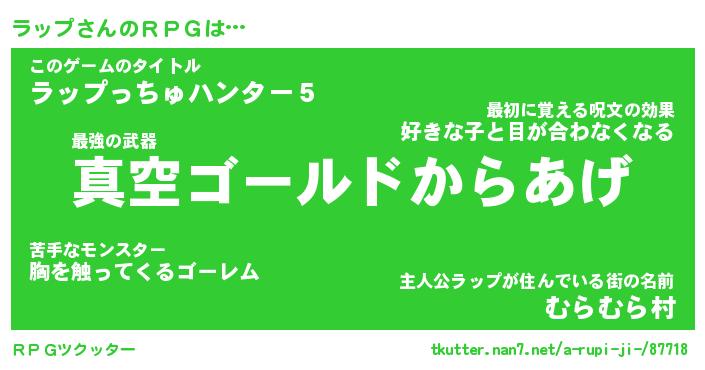 | ファンタジー風あだ名 | 『ラッフェル』『エターナルラップー』 |