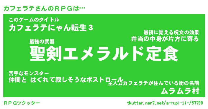| ファンタジー風あだ名 | 『カフフェル』『エターナルカフェラテー』 |