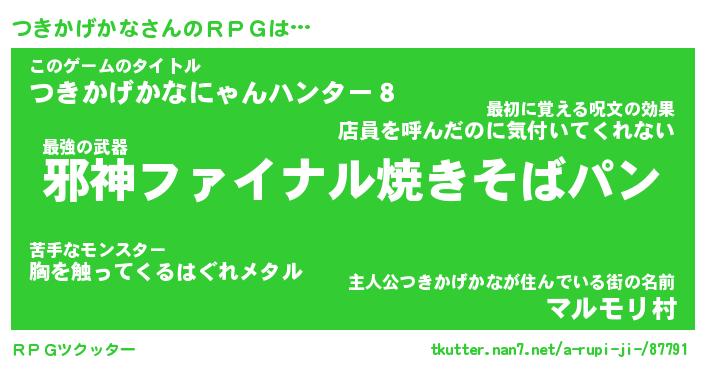 | ヒーロー風カッコイイあだ名 | 『スーパーツキカゲカナ』『炎刃騎士ツキ』 |