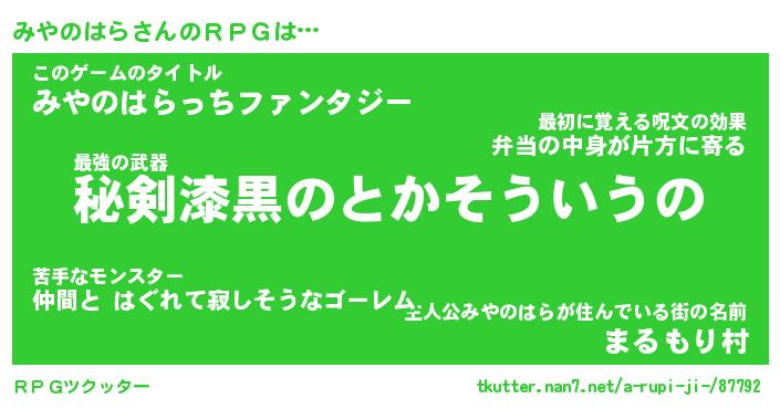 | 胡散臭い通販商品みたいなあだ名 | 『モテモテ間違いなし霊験あらたかなお札…その名も「みやのはら」』 |
