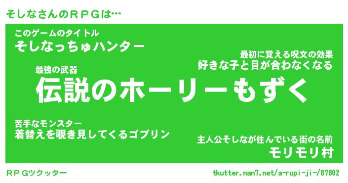 | 男性向けラノベタイトル風あだ名 | 『そしなの憂鬱』 |