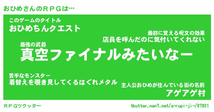 | ファンタジー風あだ名 | 『オヒフェル』『エターナルオヒメー』 |