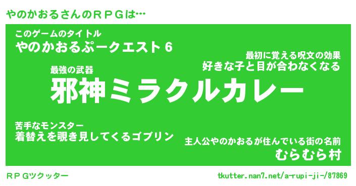 | ファンタジー風あだ名 | 『ヤノフェル』『エターナルヤノカオルー』 |