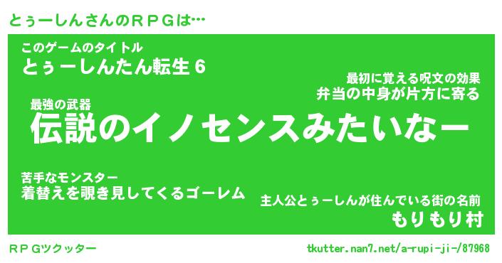 | 男性向けラノベタイトル風あだ名 | 『とぅーしんの憂鬱』 |
