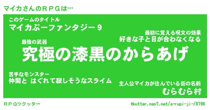 | ポケモン風あだ名 | 『マイチュウ』『マイカダネ』 |