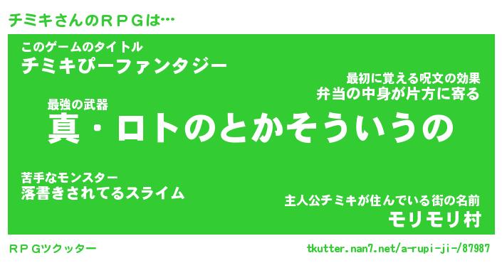 | ファンタジー風あだ名 | 『チミフェル』『エターナルチミキー』 |