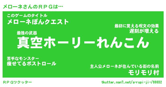 | 男性向けラノベタイトル風あだ名 | 『メローネアートオンライン』 |
