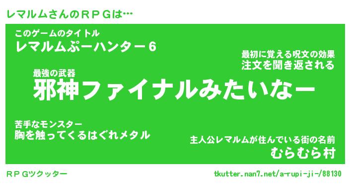 | ヒーロー風カッコイイあだ名 | 『スーパーレマルム』『銀牙騎士レマ』 |