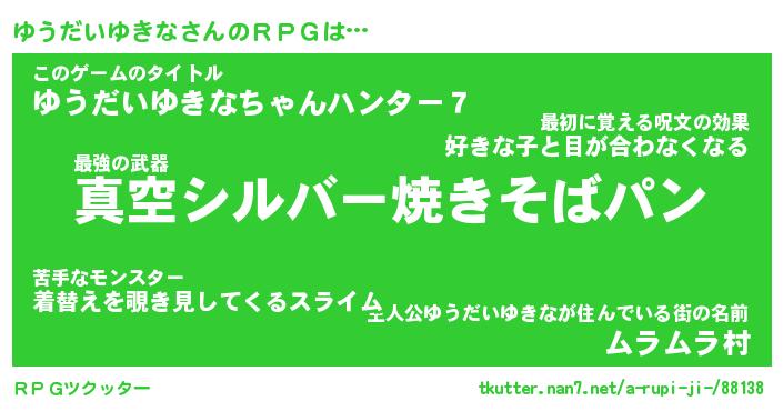 | 伝説のあだ名 | 『封印されし傭兵ゆうだいゆきな』 |
