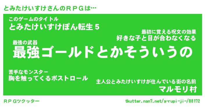 | 胡散臭い通販商品みたいなあだ名 | 『モテモテ間違いなし霊験あらたかなお札…その名も「とみたけいすけ」』 |