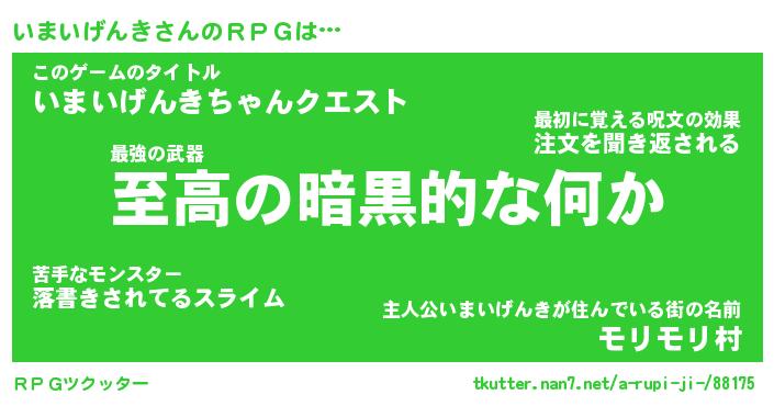 | 男性向けラノベタイトル風あだ名 | 『イマイゲンキアートオンライン』 |
