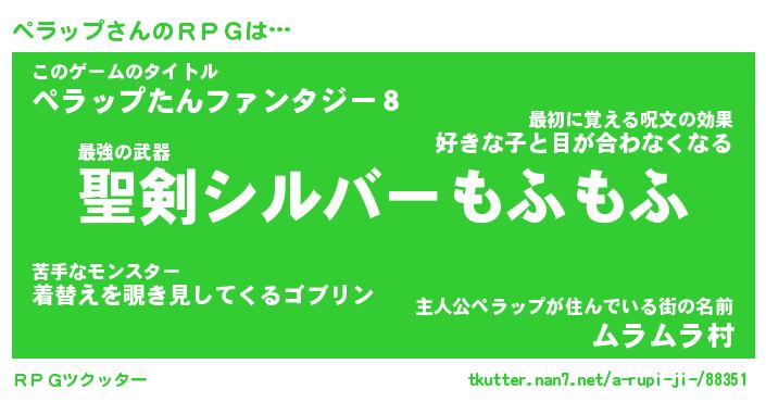 | ヒーロー風カッコイイあだ名 | 『スーパーペラップ』『幻影騎士ペラ』 |