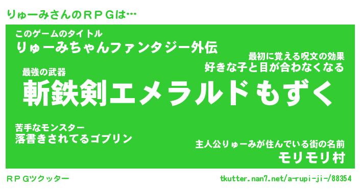 | 胡散臭い通販商品みたいなあだ名 | 『必ず成功する霊験あらたかなお札…その名も「りゅーみ」』 |