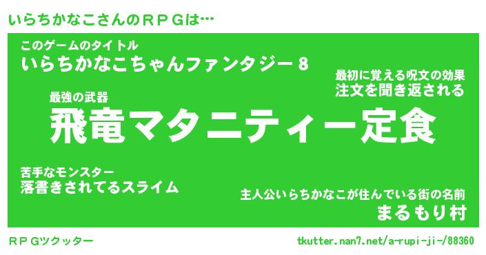 | ヒーロー風カッコイイあだ名 | 『スーパーイラチカナコ』『暗黒騎士イラ』 |