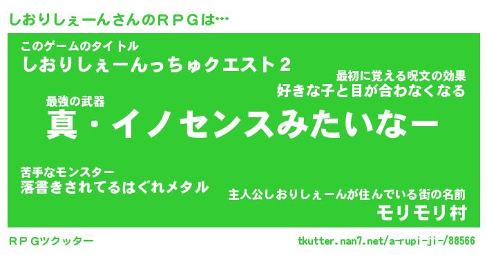 | 伝説のあだ名 | 『封印されしスナイパーしおりしぇーん』 |