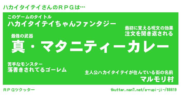 | 欧米人風あだ名 | 『マイケルハカイタイテイ』 |