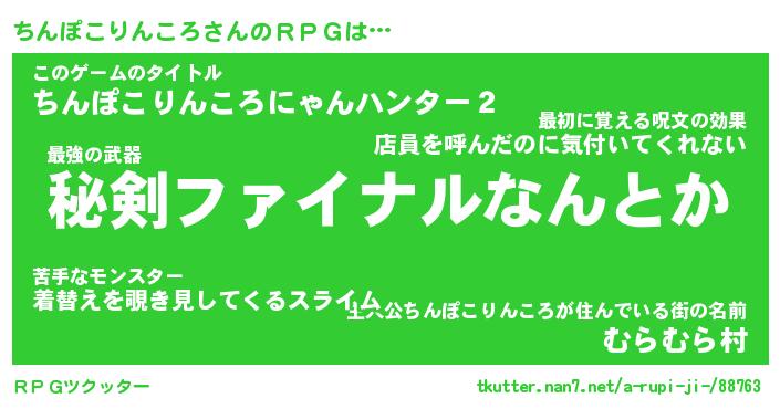 | 伝説のあだ名 | 『不死鳥の竜騎士ちんぽこりんころ』 |
