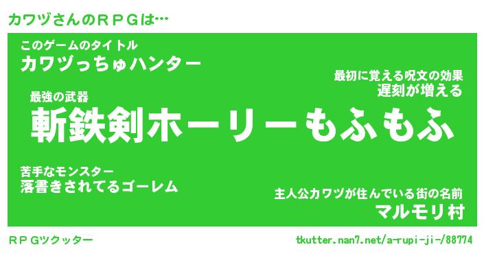 | 男性向けラノベタイトル風あだ名 | 『カワヅの憂鬱』 |