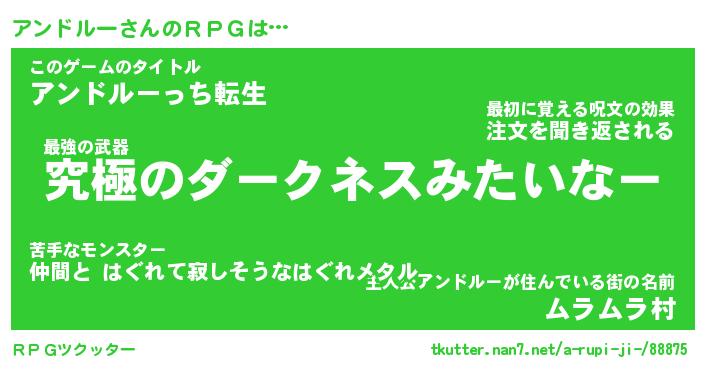 | ファンタジー風あだ名 | 『アンフェル』『エターナルアンドルーー』 |