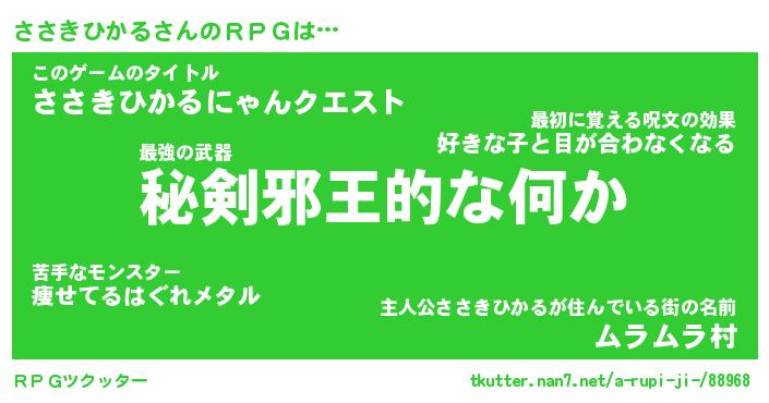 | ヒーロー風カッコイイあだ名 | 『スーパーササキヒカル』『暗黒騎士ササ』 |